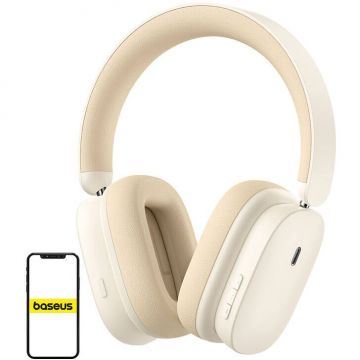 Casti Stereo Wireless Baseus Bowie D05, Bluetooth, 40mm, Bluetooth 5.3, 600 mAh (Crem)