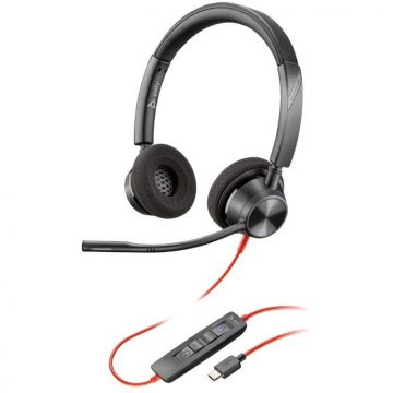 Casti Poly Blackwire 3325 Stereo Certificat Microsoft Teams 3.5mm USB-C/A Adaptor Negru