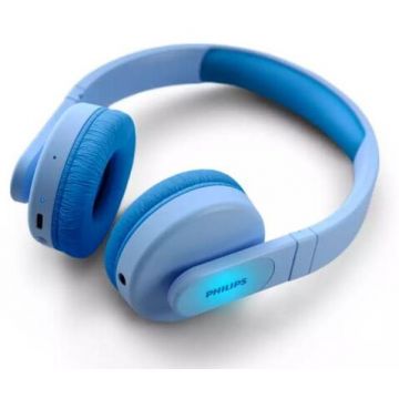 Philips Casti Stereo Wireless Philips TAK4206BL/00, pentru copii, On-Ear, Bluetooth, redare 28 de h, incarcare rapida, microfon (Albastru)