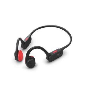 Casti alergare True Wireless Open-ear Philips Seria 6000 TAA6709BK/00, Autonomie 28 ore, Microfon, Conductie aer, IP55 (Negru/Rosu)