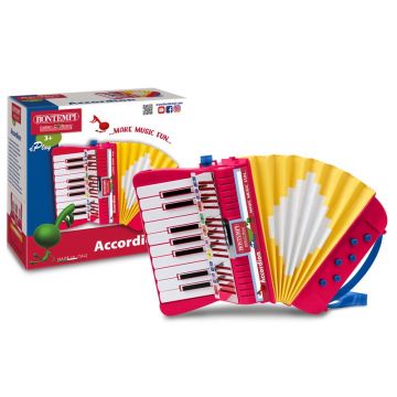 Acordeon, Bontempi, Cu 17 clape si 6 butoane de bas, Curea de umar inclusa, 21x12x21 cm, 36 luni+, Red