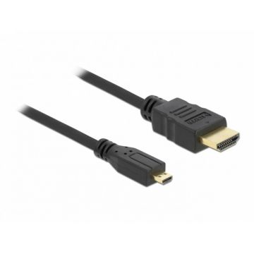 Cablu micro HDMI-D la HDMI 4K T-T 2m Negru, Delock 82664